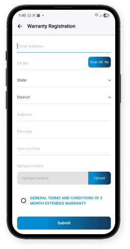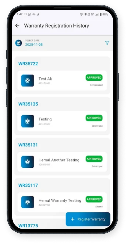 Dealers or distributors can scan a QR code or upload an invoice at the time of sale. The warranty gets registered instantly in the system, making future claims simple and trackable.
